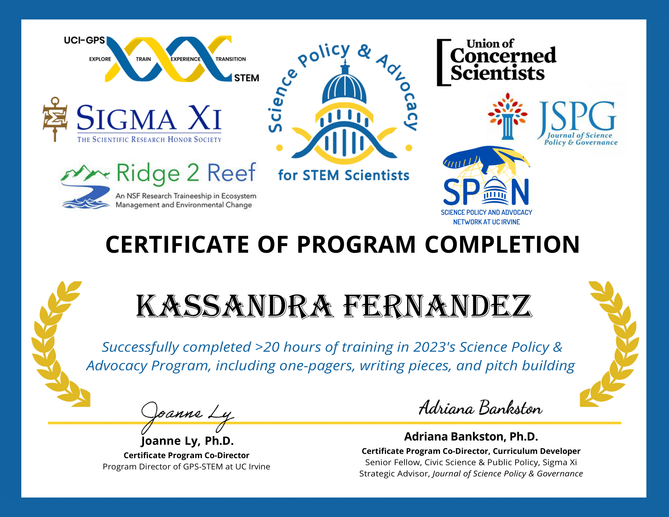 This science policy and advocacy program is offered by the University of California - Irvine (UCI) through their Graduate Professional Success for STEM PhDs and Postdocs initiative. The program is designed to teach STEM PhDs and postdoctoral trainees the essential skills required for a career in science policy. It covers a wide range of topics, including policy development, science communication, and career pathways. Additional topics covered include how to find resources and funding opportunities, and best practices for networking.